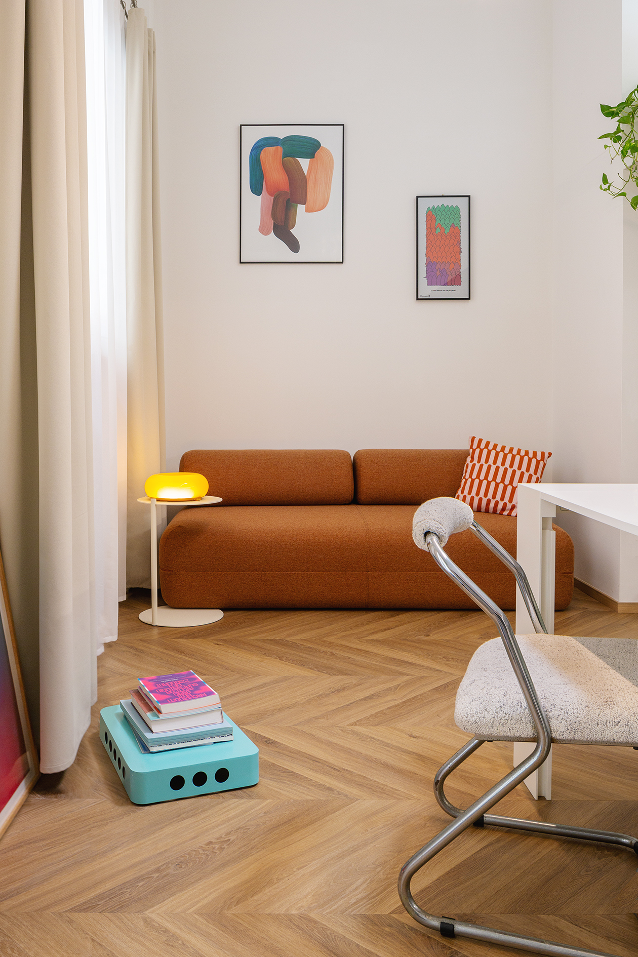 La tanière is a lively, flexible space tucked within a traditional Milanese courtyard, with a playful French-pop vibe.